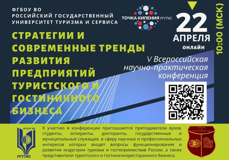 22 апреля 2022 состоится V Всероссийская научно-практическая конференция «Стратегии и современные тренды развития предприятий туристского и гостиничного бизнеса»